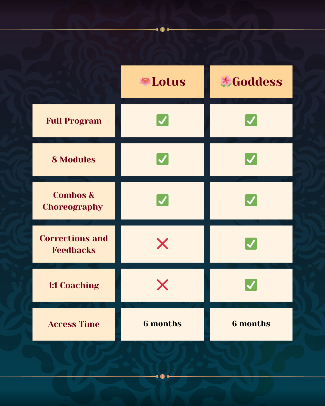 Due to the personalised nature of the Private Coaching Track, a limited number of Goddess Tier spots are available each month.
